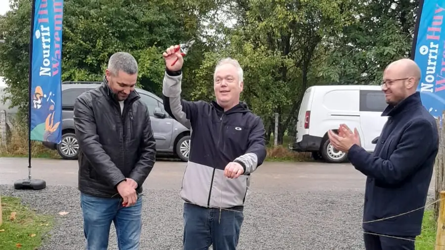 - Coupage du ruban à l'entrée du site par Jean-François PECHEUR et Bruno DAL MOLIN, Bourgmestre de la commune de Modave assistés par Pierre-Emmanuel GILLARD, Conseiller Ruralité, représentant du Cabinet de Anne-Catherine Dalcq, Ministre en charge de l’Agriculture et de la Ruralité.