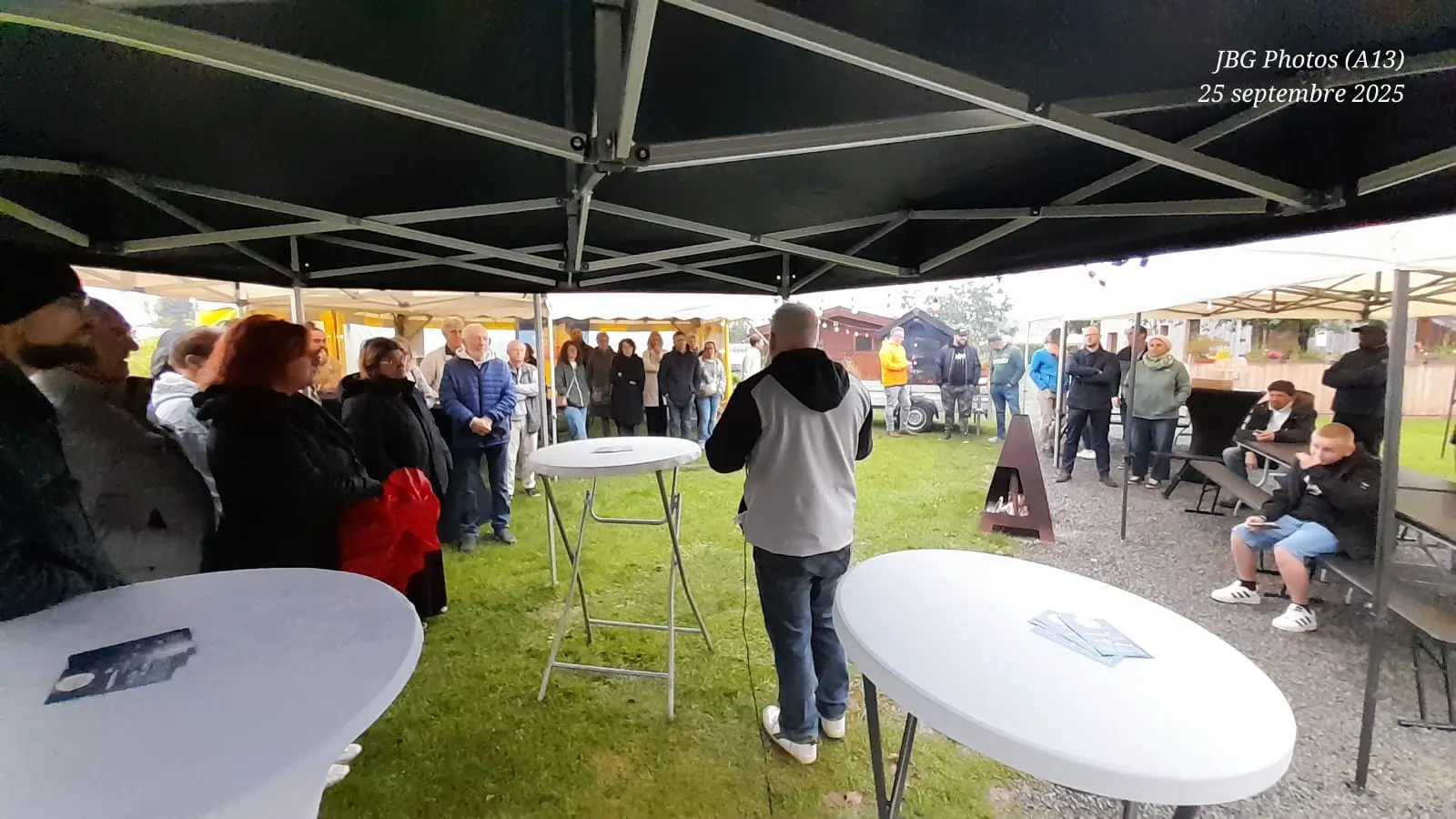 Ce 25 septembre, après une journée sans pluie pour les préparatifs, celle-ci s'invita d'elle-même vers 17h juste avant l'arrivée des invités. Cela n'a pas repoussé les 60 personnes présentes de venir partager ce moment convivial...Cet évènement s'inscrit en toute logique dans la période du Festival " Nourrir Huy-Waremme 2025."