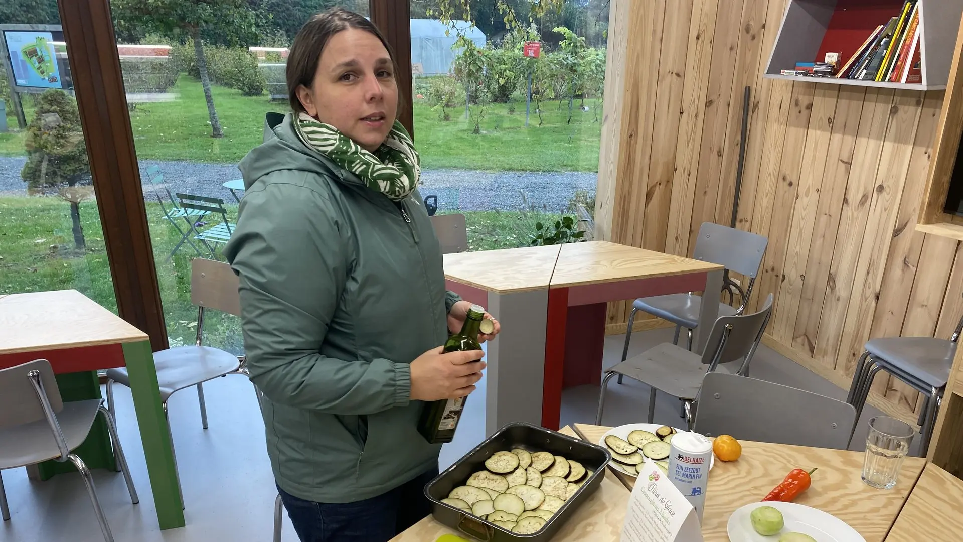 - Apéro dînatoire avec les légumes de notre production, soupe, cidre et notre jus de pomme réalisé avec l'Asbl PPresse avec l'aide de Gervais MBAIDANOUM et Peter VAN MOL de l'Asbl Devenirs.