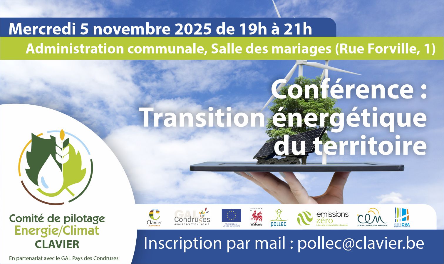- Inscription : Souhaitée (pour faciliter l'organisation) par email : pollec@clavier.be